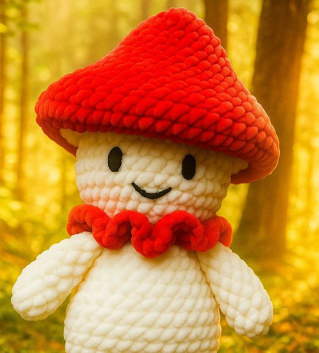 Doudou champignon réalisé à la main au cochet doux et moelleux avec oeil brodé pour les tout petits.