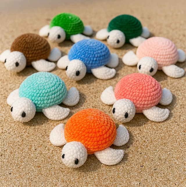 Petite tortue douce et moelleuse, faite main au crochet en polyester, œil brodé pour les tout petits.