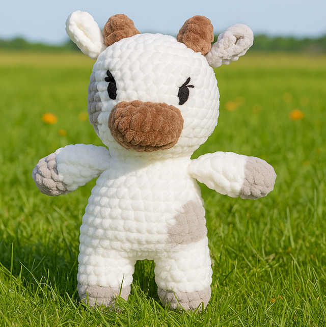 Vache douce et moelleuse, faite main au crochet en polyester, œil brodé pour les tout petits.