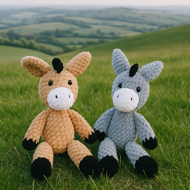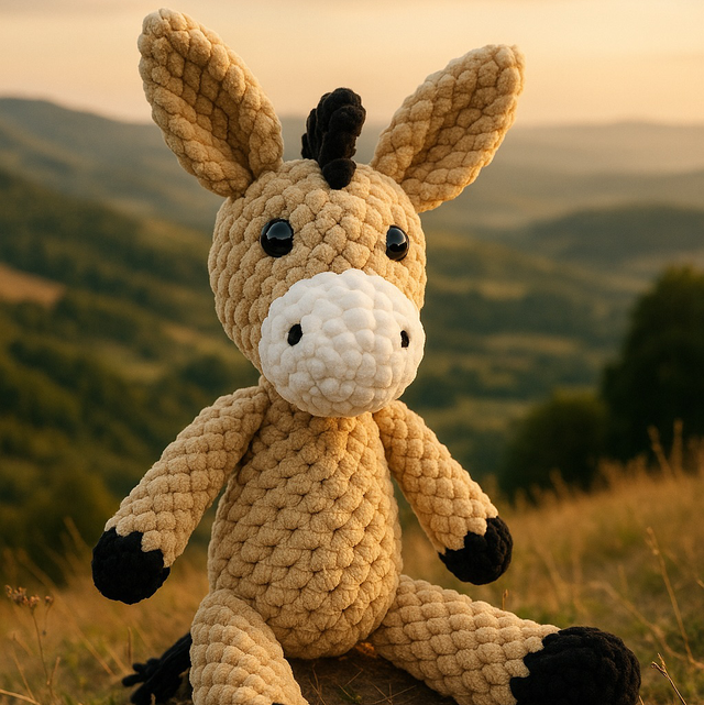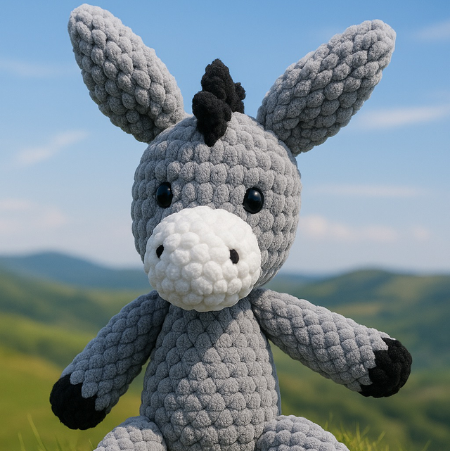Doudou Âne réalisé à la main au cochet en polyester, doux et moelleux avec oeil brodé pour les tout petit.