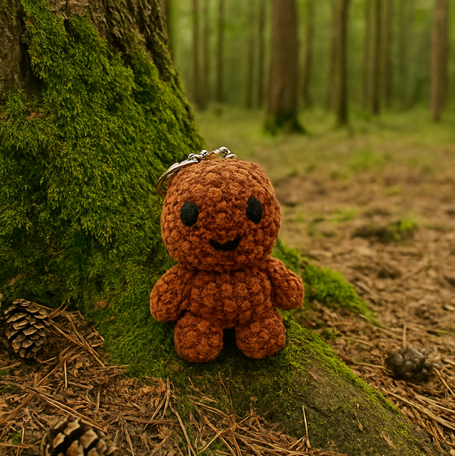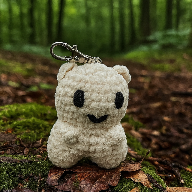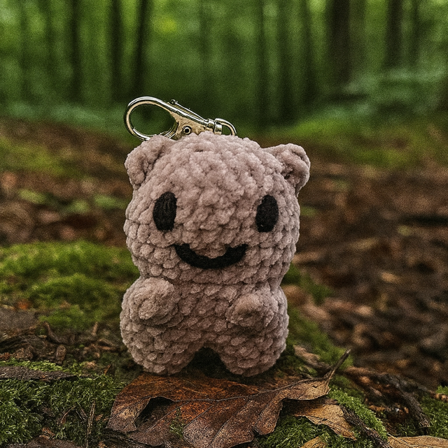 Porte nounours fait main au rochet en polyester, doux et moelleux.
